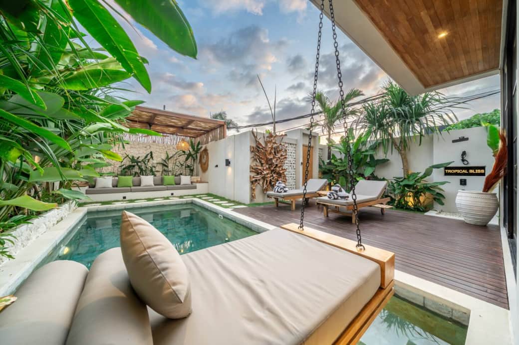 Welcome to Tropical Bliss, a serene 2BR villa near Pererenan Beach in Mengwi, Indonesia. Perfect for a relaxing getaway, this villa features 2 cozy bedrooms, 3 bathrooms, and a fully equipped kitchen with a coffee machine, blender, and dishwasher. Stay cool with air conditioning, stream your favorites with Wi-Fi, and unwind in the tub. With a safe and fire extinguisher for peace of mind, your tropical escape awaits!